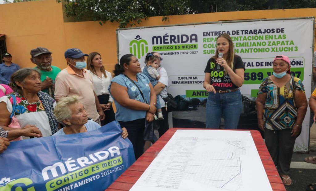 Como parte de la jornada, la presidenta municipal entregó los trabajos de repavimentación en la colonia San Antonio Xluch, donde reafirmó que el ordenamiento de la ciudad inicia desde el sur. Las obras beneficiaron también a colonias como Emiliano Zapata Sur III, con la reconstrucción de 2.5 kilómetros de vialidad.