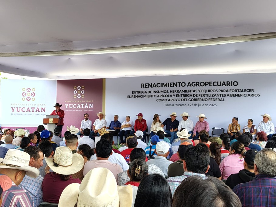 Aquí, en Tizimín, entregamos hoy insumos a 181 apicultores del municipio con más de dos millones de pesos de inversión, que no consideramos un gasto, es una semilla que va a florecer en mejor ingreso, más exportaciones y más futuro para las comunidades rurales”, expresó.