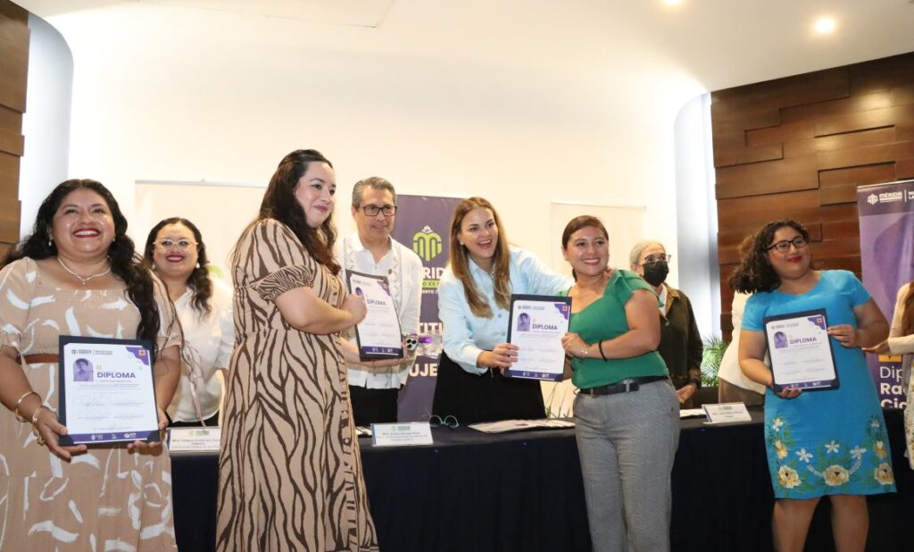 Por su parte, la alcaldesa de Mérida, Cecilia Patrón Laviada, subrayó que el diplomado es ejemplo del impacto positivo que se logra cuando las instituciones suman esfuerzos. Señaló que este programa busca fortalecer la red de mujeres defensoras de derechos y constructoras de paz, así como generar un entorno más seguro y equitativo para todas.